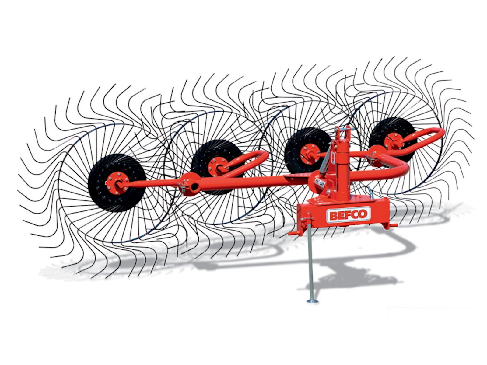 BEFCO wheel rakes are designed for efficient hay and straw collection, forming well-structured windrows for smooth pickup by round or square balers. Engineered for gentle handling, they fluff and turn hay to ensure uniform drying, optimizing both quality and baling efficiency.