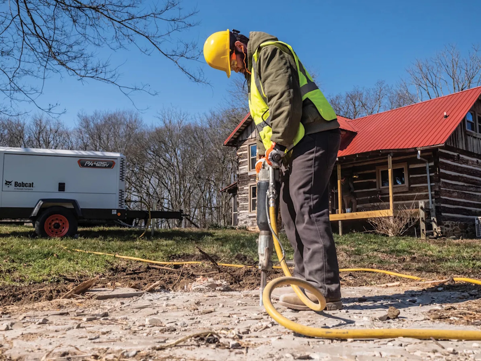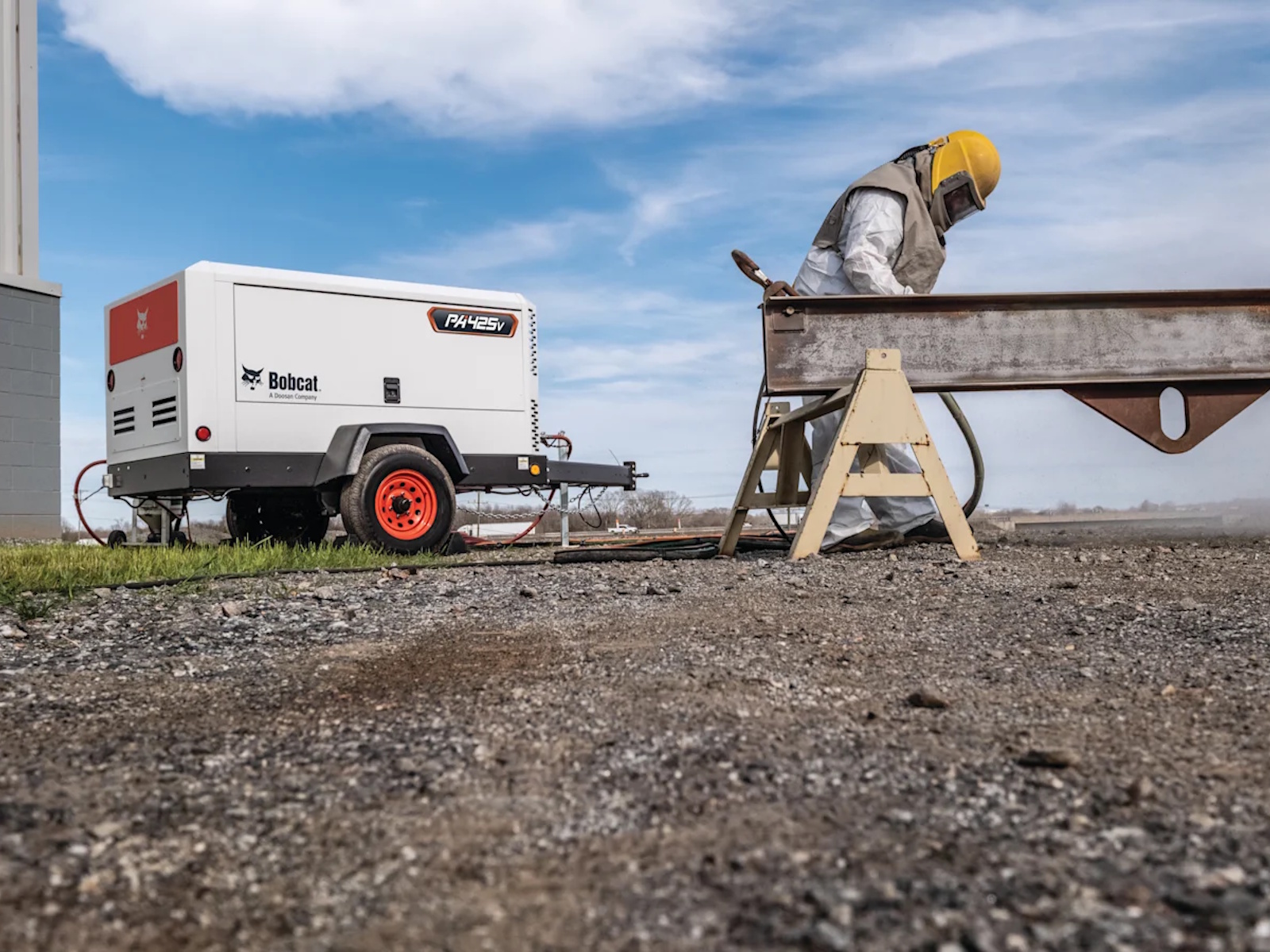 Accomplish more at your jobsite with the two-in-one versatility packed into the Bobcat PA425V portable air compressor. It delivers dual pressure with airflows of 375 or 425 cfm and pressures of 100 to 150 psi.