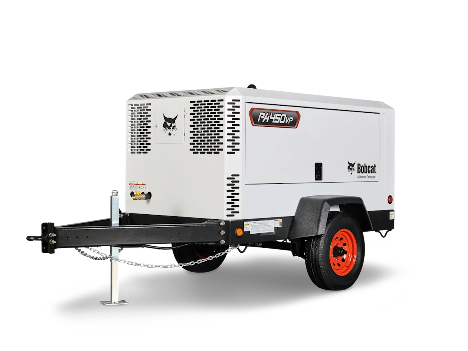 The Bobcat® PA450VP dual pressure portable air compressor delivers versatile air power in a compact, easy-to-maneuver footprint.