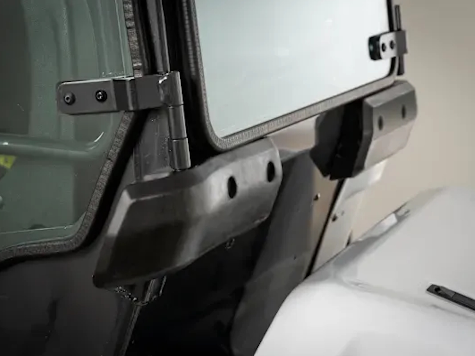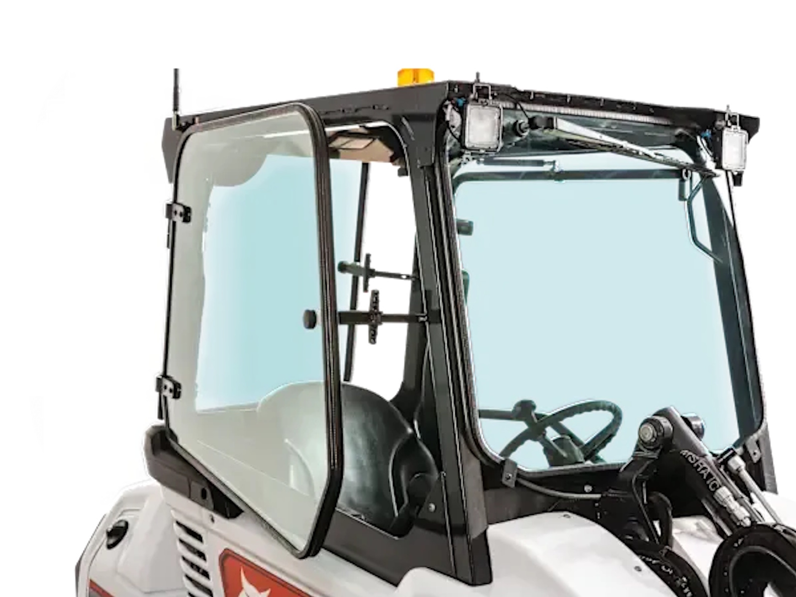 • Add the optional cab enclosure with the heated seat and you’ll stay comfortable and productive in cold and wet weather. The heated seat helps keep your body warm and comfortable while clearing snow or working in frigid temperatures. Strategically placed, louvered vents help quickly defrost windows and provide direct heat to operators, providing versatility for tackling more work during winter months. A rear defrost window can now be added to all cabbed models to help quickly clear windows of frost or condensation. Automotive-style rear defroster helps maintain visibility in varying weather conditions. Window panels can be added or removed, giving you added flexibility to adapt with the weather to keep operators comfortable in every season.