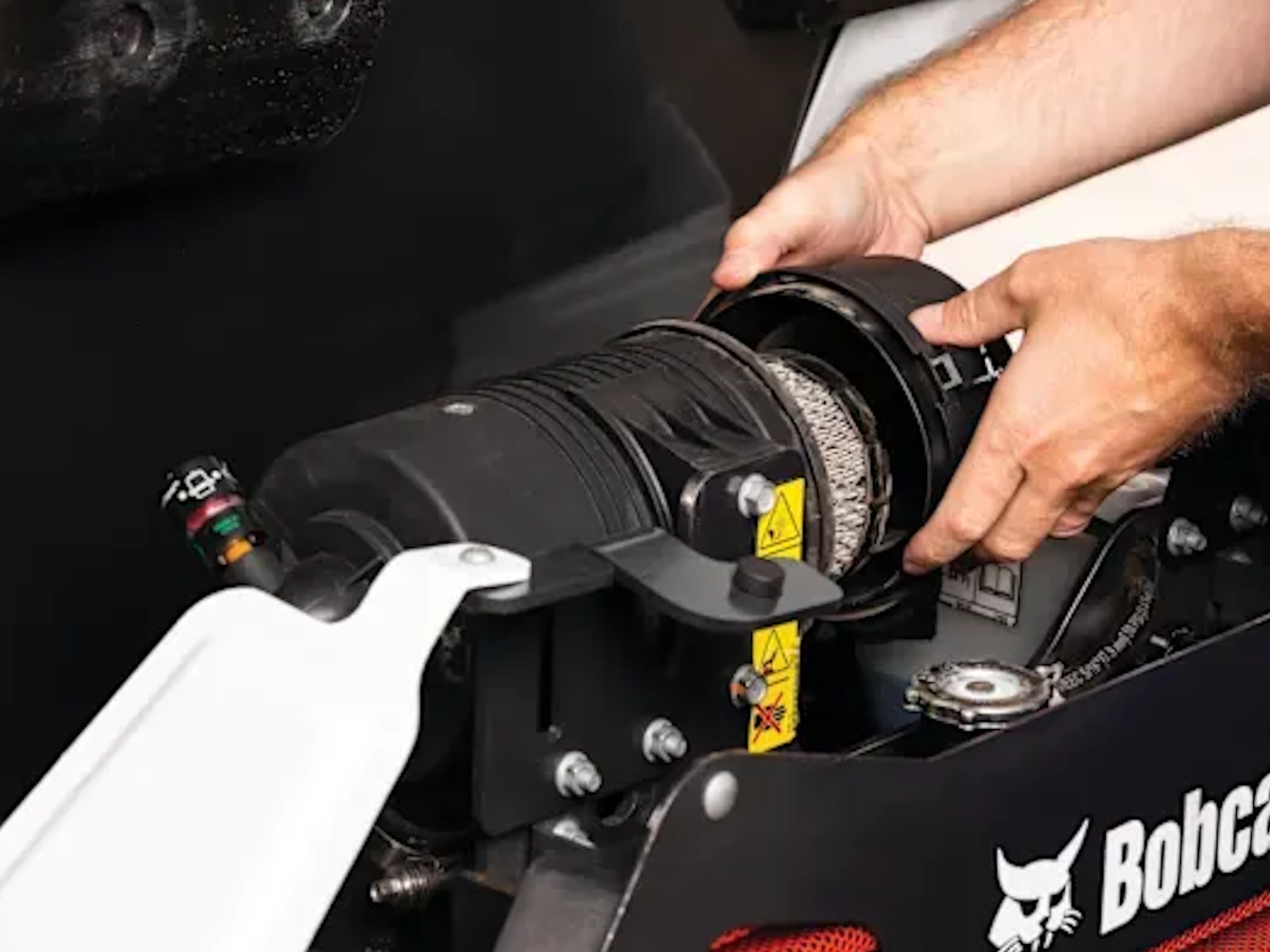 • The dual-element, high-capacity filter with visual indicator is one feature that makes Bobcat® small articulated loaders easy to maintain. The air filter delivers clean airflow to your engine and excellent contaminant-holding capacity for long life and maximum component protection.