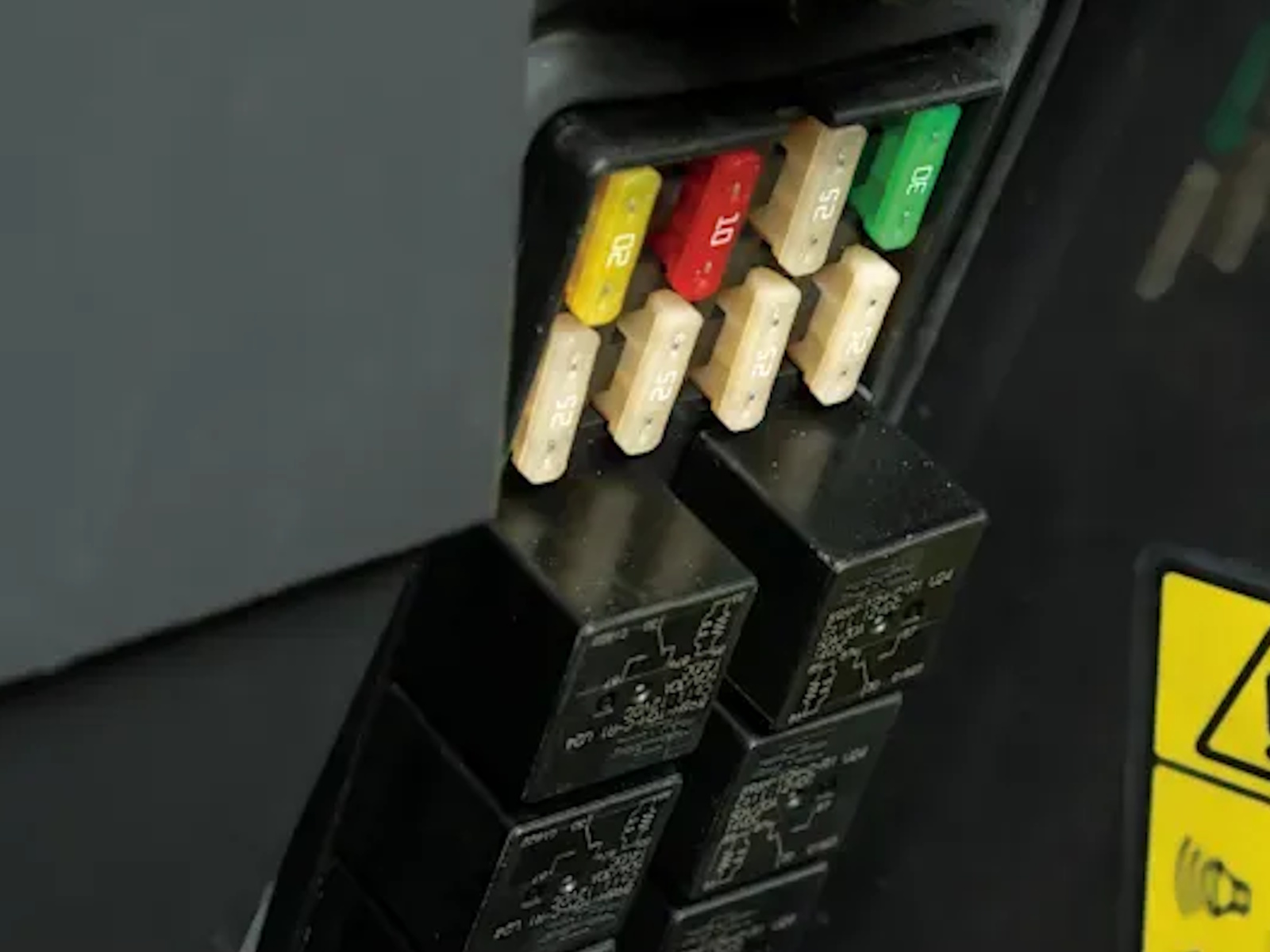 • Fuses and relays on Bobcat small articulated loaders are centrally located behind a cover inside the cab.