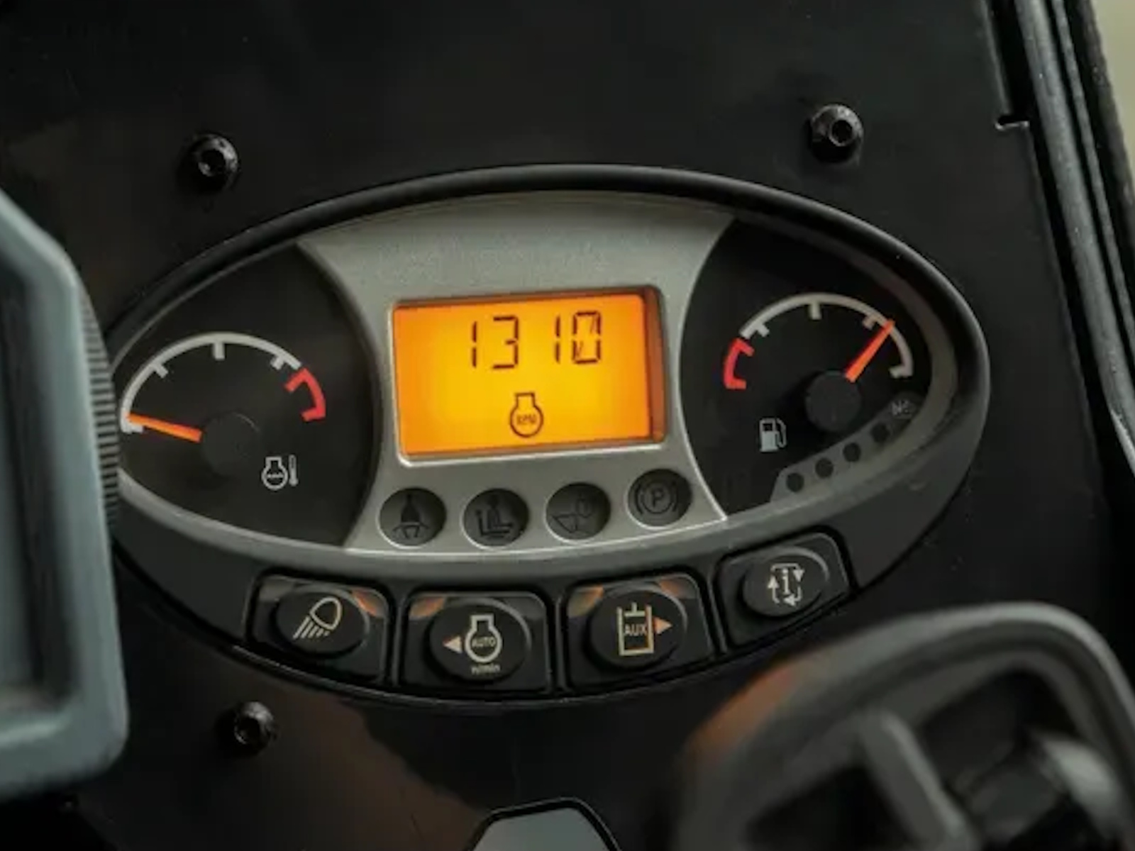 • Small articulated loaders feature an easy-to-read, backlit instrumentation panel that provides visibility to operating information, critical machine errors and warnings.