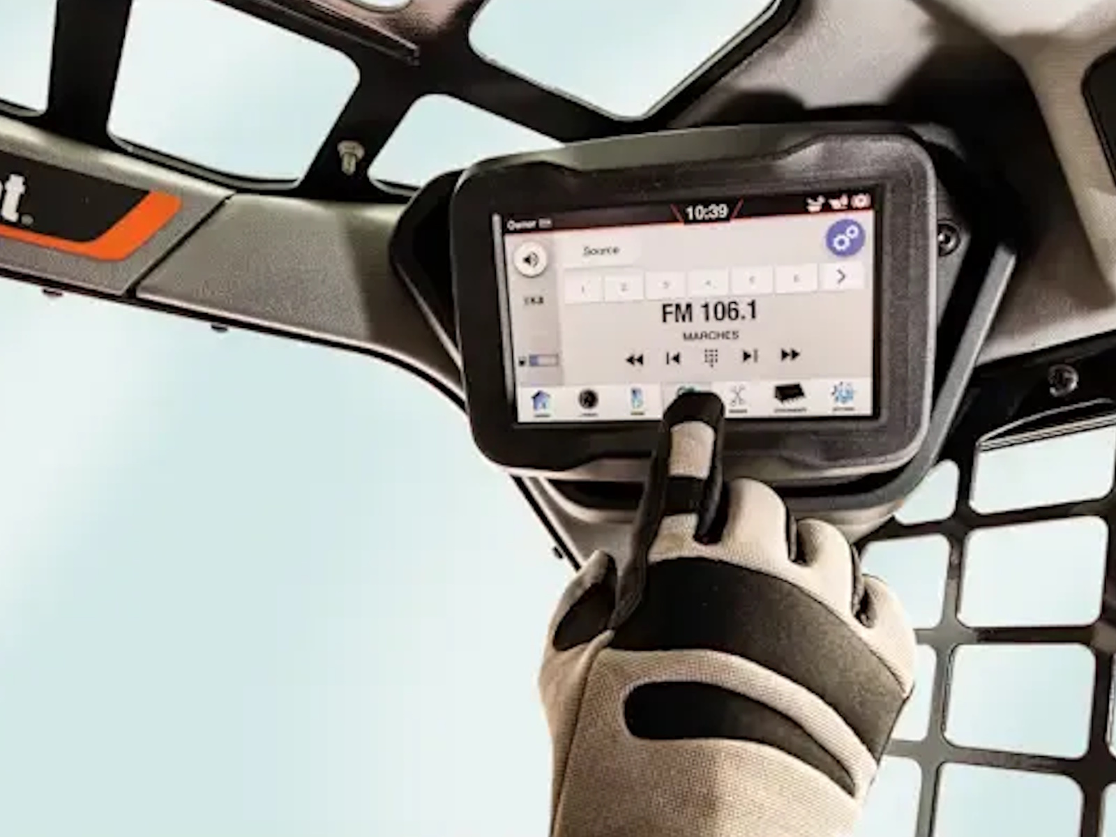 - With the most advanced in-cab display for compact equipment, you’ll experience detailed machine information and unparalleled device connectivity. The optional Touch Display features an 800x480-pixel display resolution. Operators can easily view and toggle through machine performance and information on the wide, easy-to-use touchscreen that supports seven languages. Plus, it’s waterproof and hardened to reduce scratching.