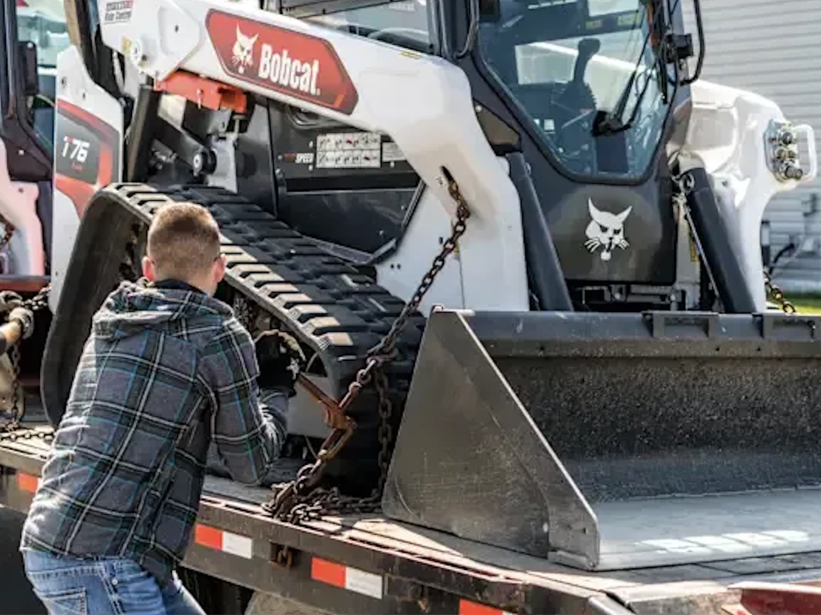 - Quickly secure your skid-steer loader or compact track loader without searching for hard-to-reach tie-downs. The tie-downs are easy to locate and use.
