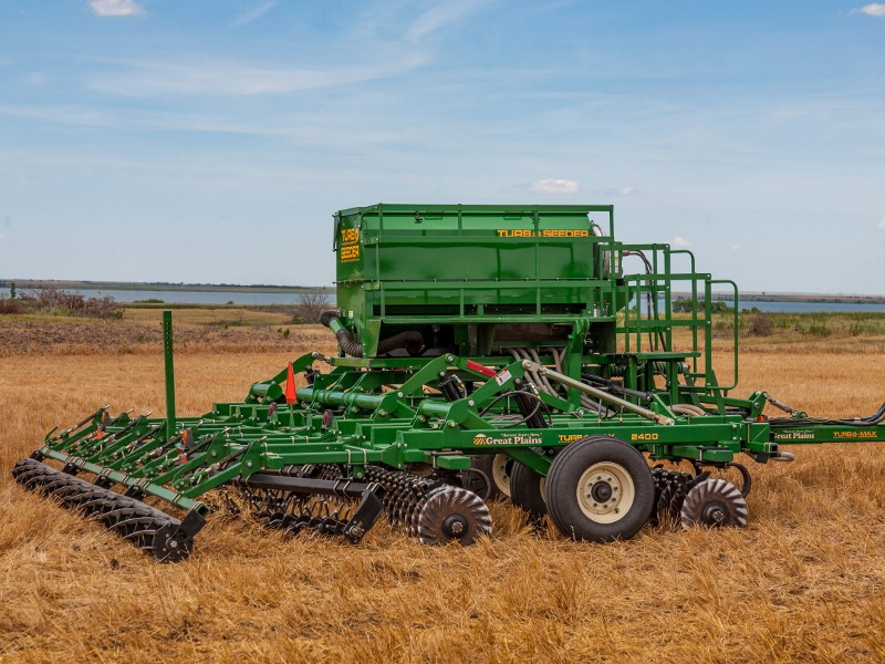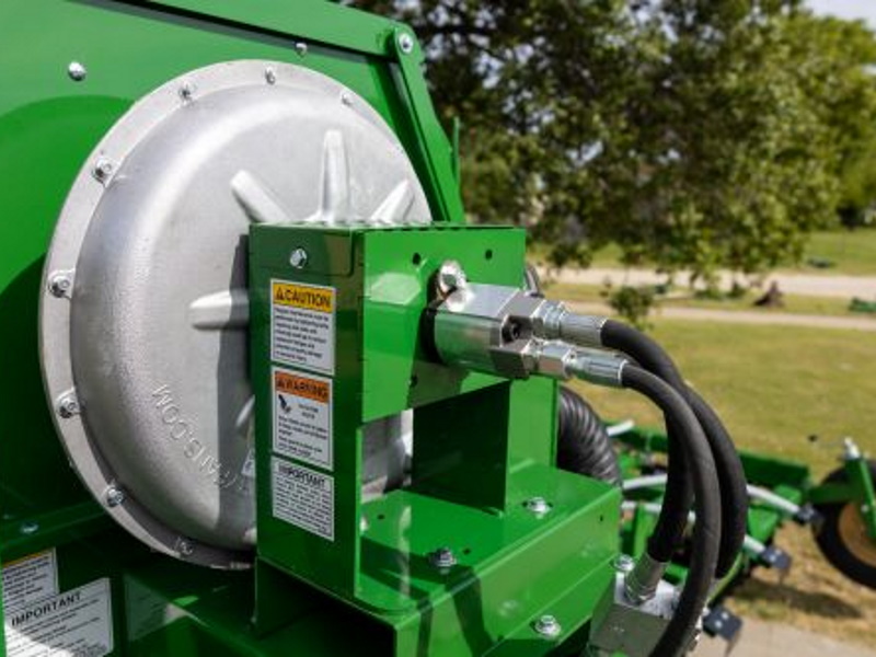 Combine the benefits of cover crop application and soil management with the Turbo-Seeder from Great Plains! Available in two different sizes, this seeder can be installed on select Great Plains Terra-Max® and Turbo-Max® models. Turbo-Seeder offers a cost-effective, highly productive method for broadcast seeding cover crops with a vertical or hybrid tillage tool. With Turbo-Seeder, you can simultaneously till your soil, size residue, and plant cover crops in one pass.