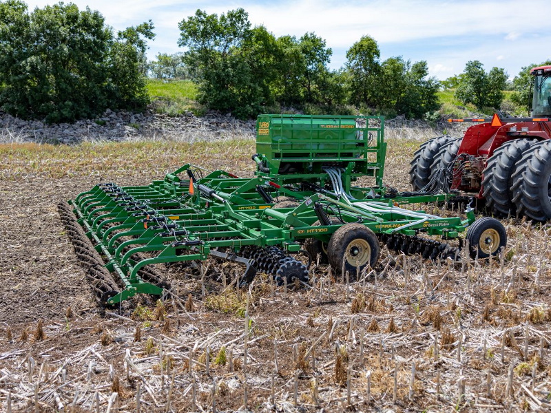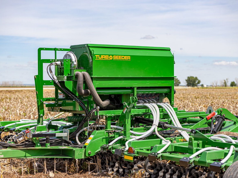 The Turbo-Seeder cover crop attachment for Turbo-Max and Terra-Max offers a highly productive method for broadcast seeding cover crops with a vertical or hybrid tillage tool.