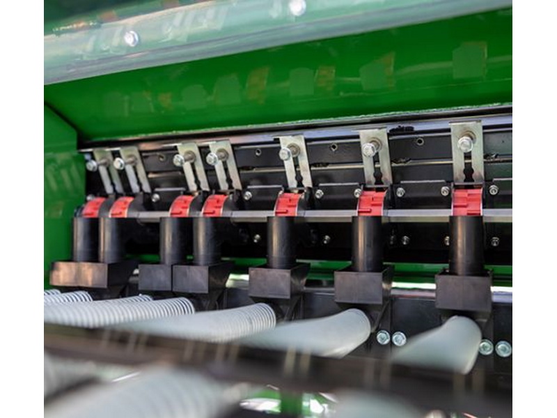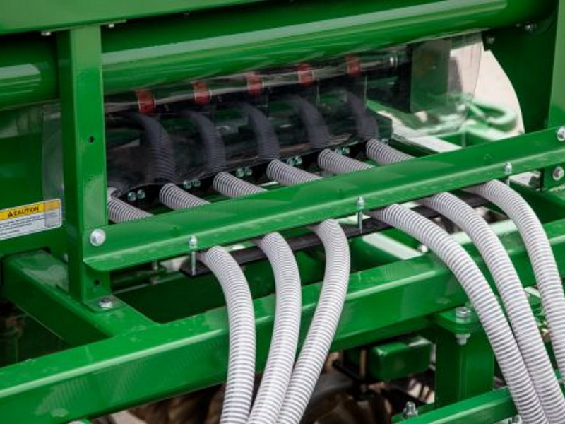 - Achieves even seed distribution across the entire machine by delivering seed to individual diffuser plates that disperse seed laterally and downward in even bands.
