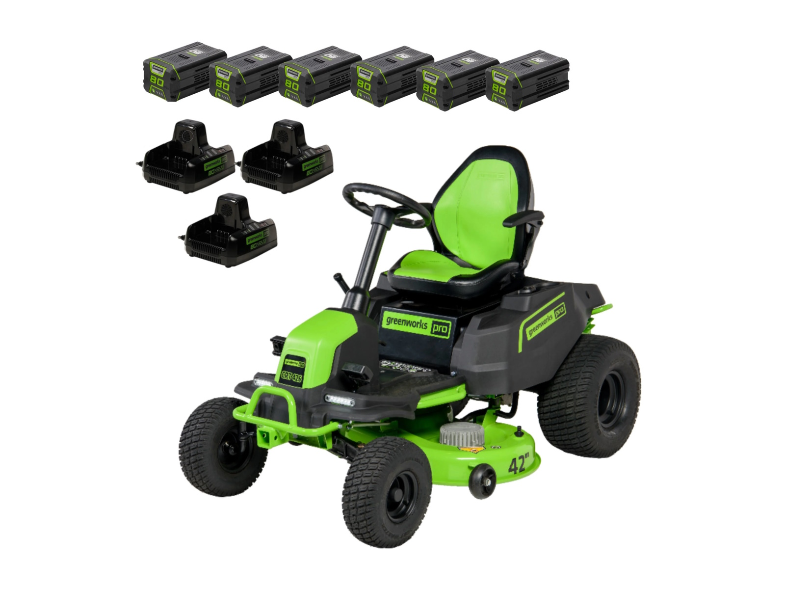 2024 Green Works 80V Cordless CrossoverT 42" w/ Six (6) 5.0Ah Batteries and Three (3) Dual Port Turbo Chargers