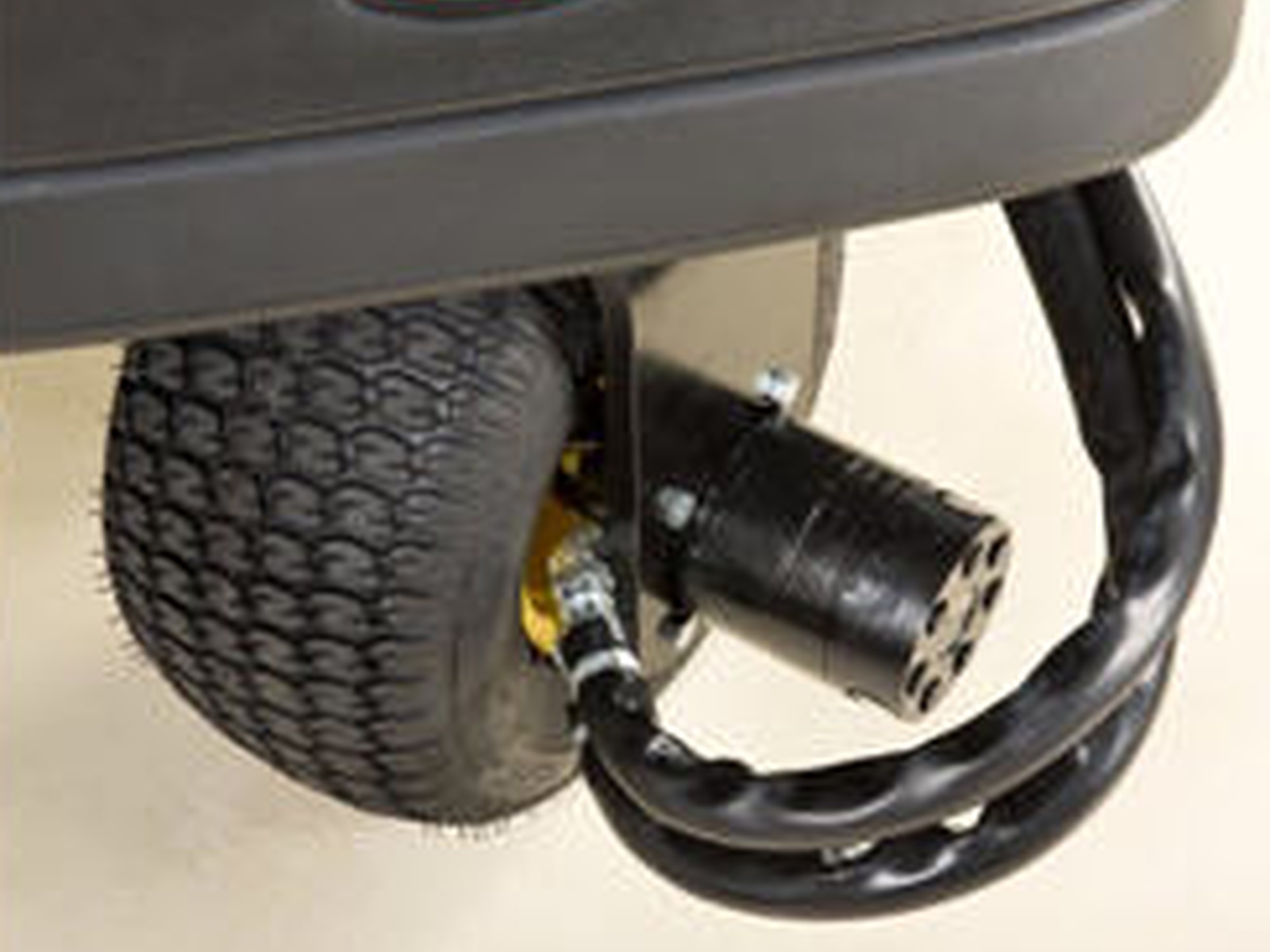 Wide 20x10-10 front and 20x10-8 rear turf tires provide excellent traction and stability for superior mowing performance.