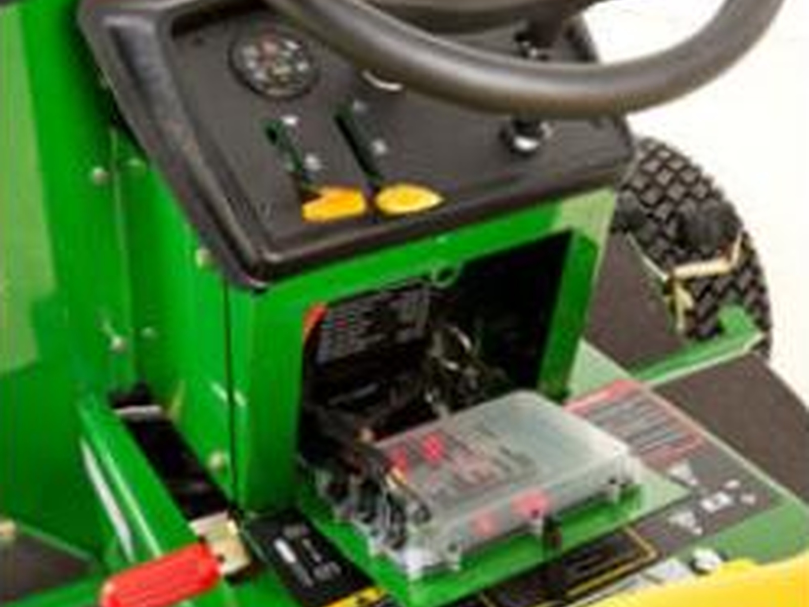 Standard onboard electrical diagnostics are located beneath the access panel just below the operator control panel. This allows for electrical system diagnosis from the seat. Sit-on-seat (SOS) diagnostics are integrated into the electrical system, alerting the operator to potential starting problems.